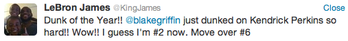 Shutup LeBron. You don’t have to apologize to anyone for the tweet sent out referring to Blake Griffin’s posterizing dunk over Kendrick Perkins.