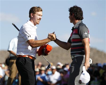 Rory McIlroy congratulates Hunter Mahan after his victory in the Accenture Match Play Championship on Sunday.