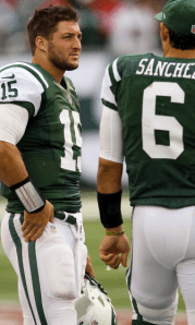 There’s a new story developing in the NFL, the New York Jets. “The Sanchise” Mark Sanchez continues to put up some of the worst numbers in the history of the NFL. Who’s worse? Only Tim Tebow last season in Denver, but he stepped up and carried a beleaguered offense all the way into the second round of the NFL playoffs. The Jets have a distinct memory of Tebow, as he beat them last year running for a TD in the final minutes of their match up last season.